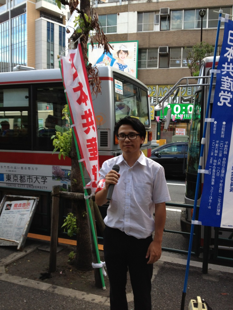 街頭で私は、310万人以上の日本国民が犠牲になり、アジア・太平洋地域では約2000万人を超す人々が犠牲になった先の戦争を二度と繰り返してはならないと、反戦平和を訴えました。今年は核兵器廃絶のため、広島で行われた原水禁世界大会にも参加し、平和への思いをさらに強くしています。いまも日本では日米安保条約のもと、アメリカいいなりの政治が続くなか、オスプレイ配備や、沖縄の普天間基地など、米軍による基地被害が続いています。