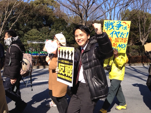 デモ行進の先頭にはアイドルグループの「制服向上委員会」の皆さんが歩き、みんなで「国防軍反対!」「北朝鮮の核実験反対!」「9条活かせ!」と声を上げました。約80名が参加したそうです。 今年は参議院選挙がありますが、もし選挙で自民党が大勝して、憲法が変えられてしまえば、日本が「戦争の出来る国」にされてしまいます。わたしは、平和憲法を守り、これを生かした平和外交によって世界とアジアの平和に貢献する日本をめざすべきだと思っています。戦争で犠牲になるのはいつも弱い立場のわたしたちの庶民なのですから。