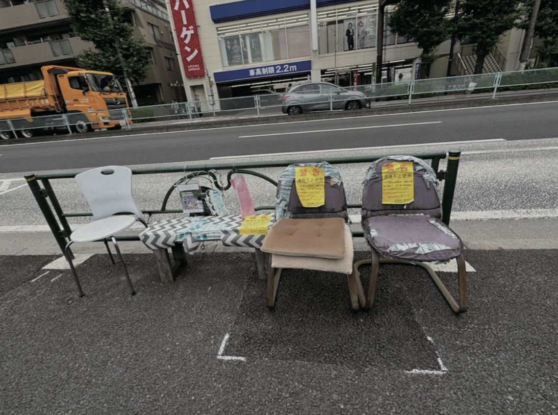 都内では、バス停のそばに「私設」の椅子が並んでいるのが見られます。これらの椅子は近所の方々が善意で置かれたものであり、お年寄りや足腰の悪い方がバスを座って待てるように提供したものだと思います。