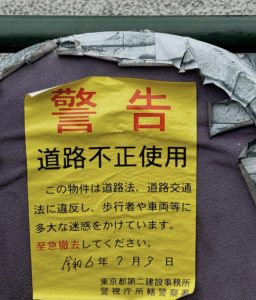 7月に、区民の方から一件のメールが寄せられました。いつも使っているバス停の私設の椅子に「至急撤去せよ」との警告文が一斉に貼られました。椅子を利用しているお年寄りや足腰の悪い方々は、つらい思いをしているとの訴えです。
